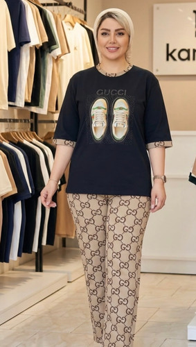 ناموجودست تیشرت لانگ تدی و شلوار بگ گوچی جنس نخ پنبه
