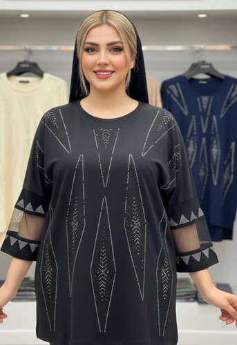 ناموجودتونیک نگین لوزی آستین کیمونو مچ توری جنس ویسکوز نخ
