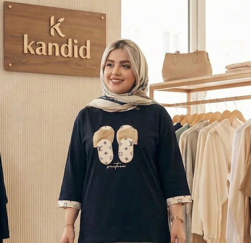 تیشرت لانگ طرح دمپایی پشمالو آستین سه ربع جنس سوپر پنبه