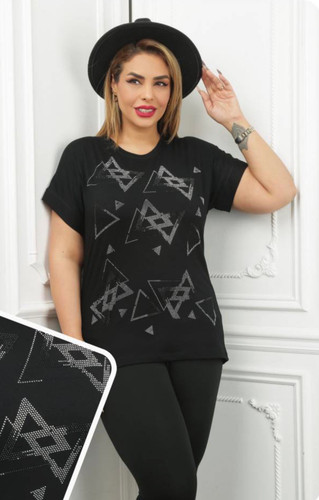 تیشرت آستین کوتاه کیمونو نگین دارطرح هندسی جنس ویسکوز نخ