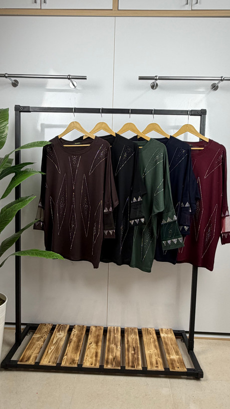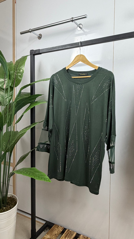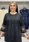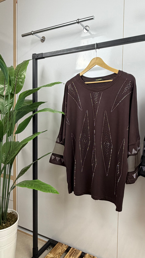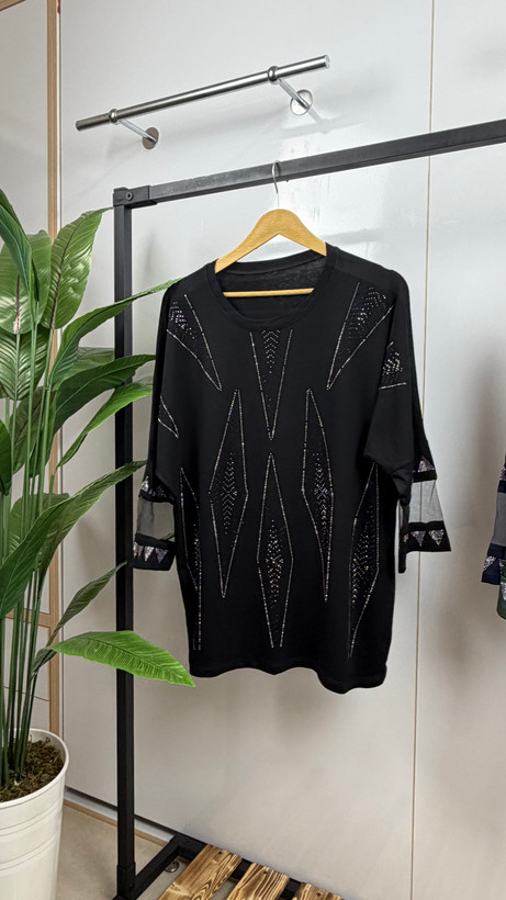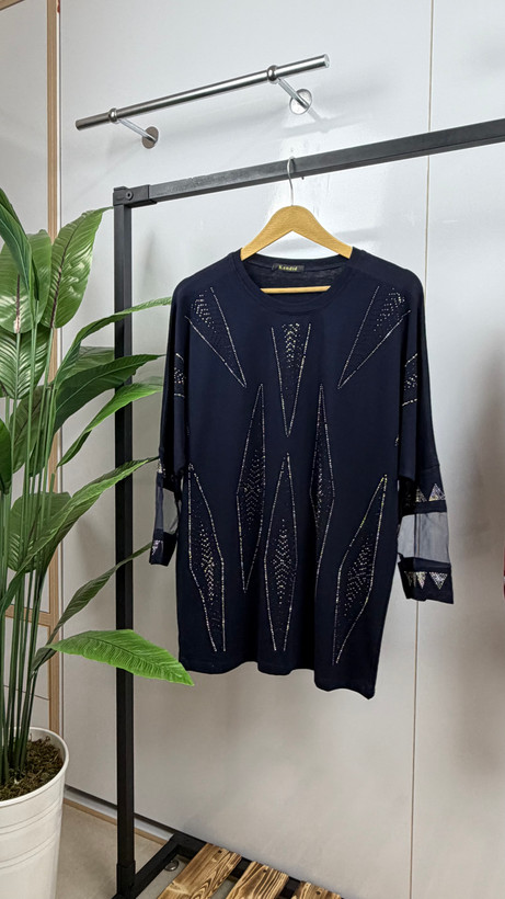تونیک نگین لوزی آستین کیمونو مچ توری جنس ویسکوز نخ