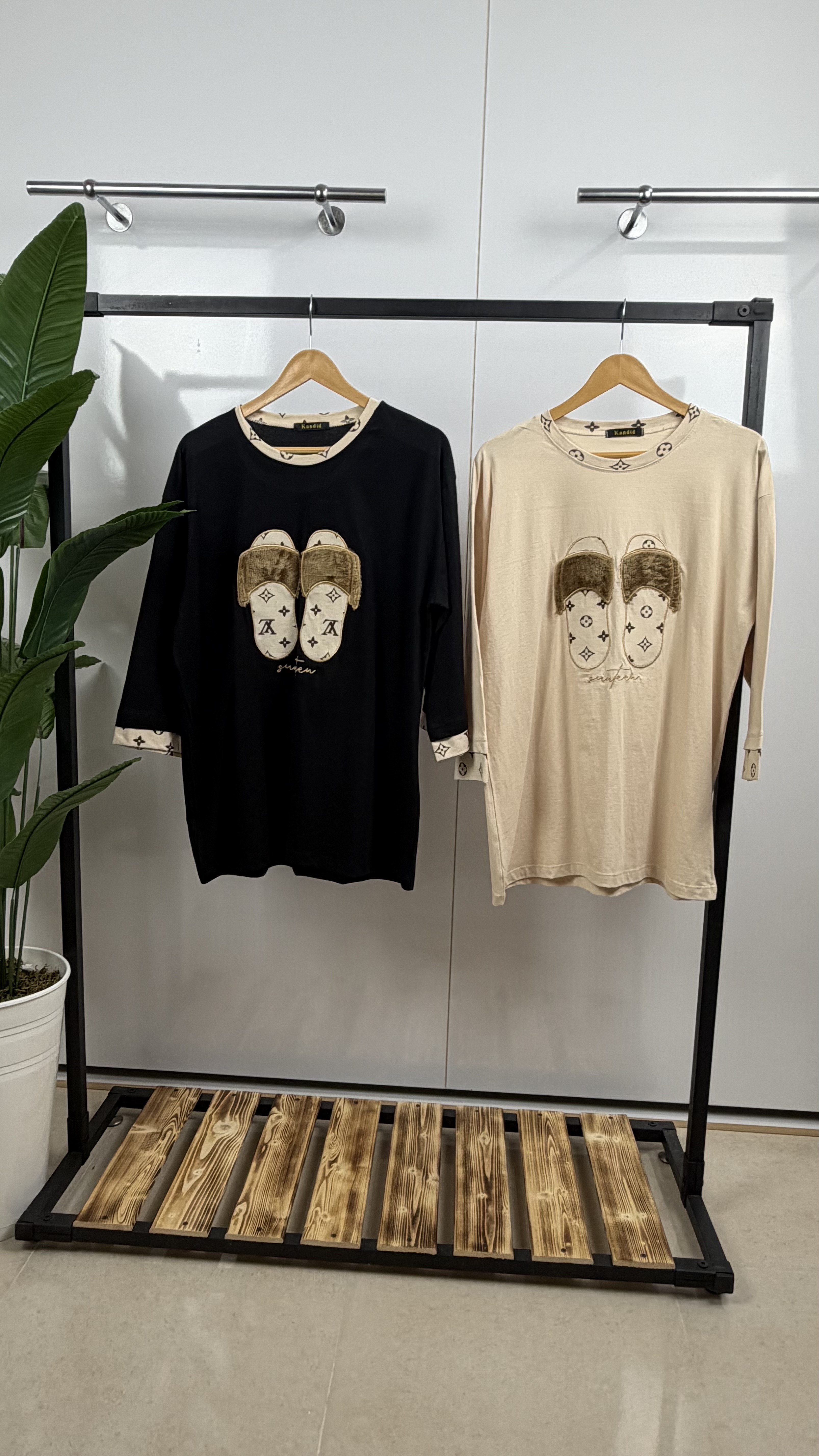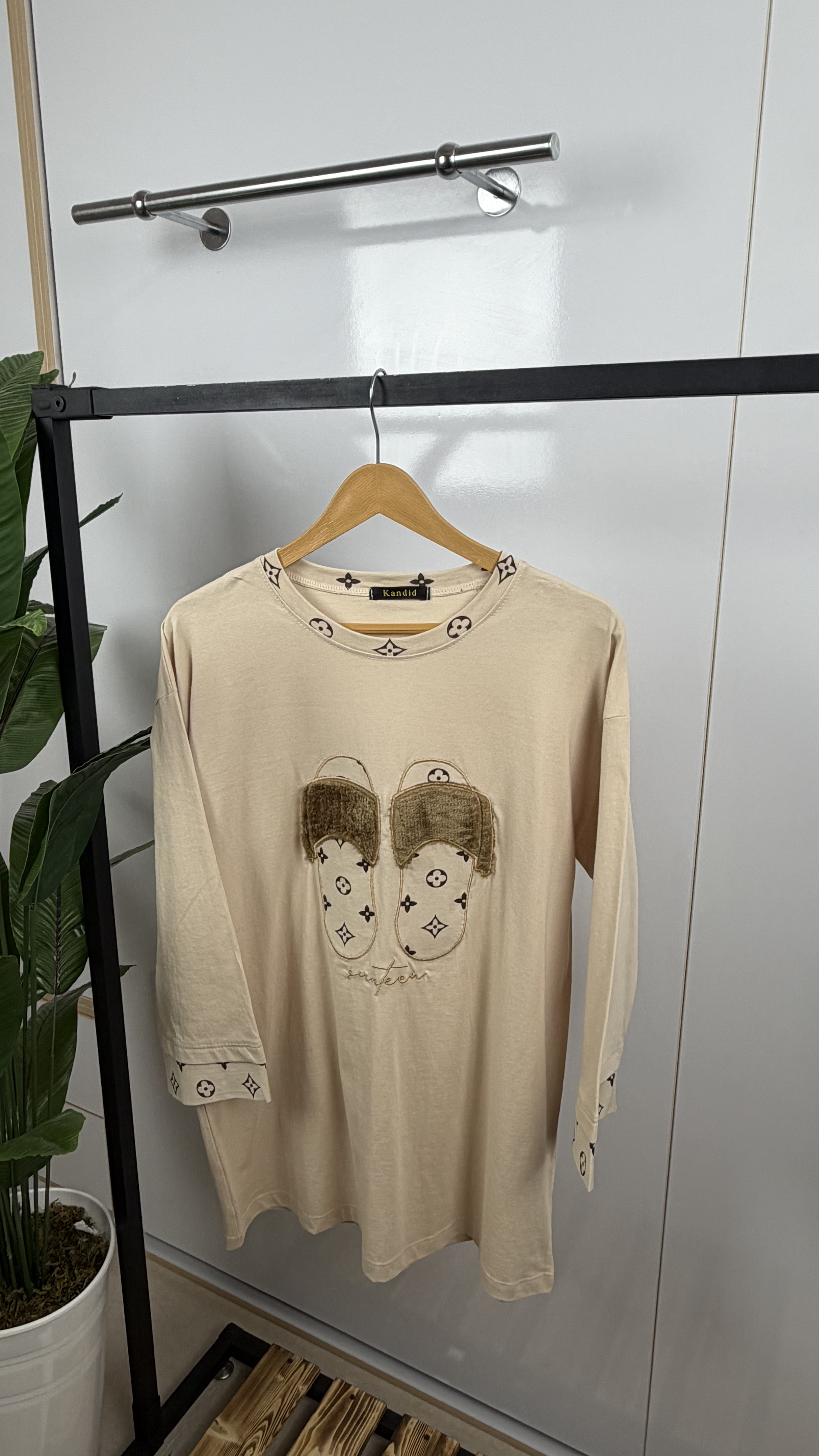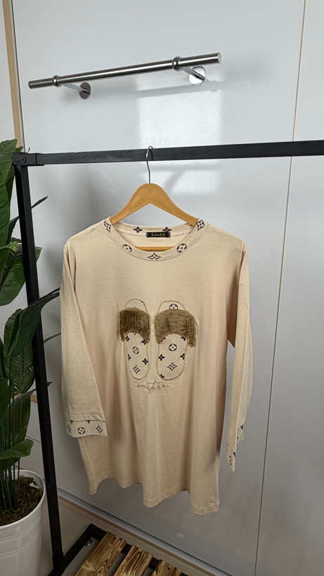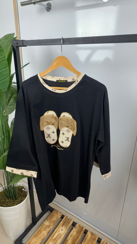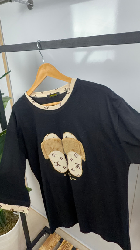 تیشرت تک لانگ طرح دمپایی پشمالو و خرج کار لویی ویتان