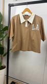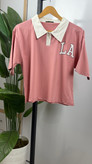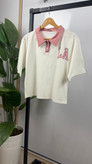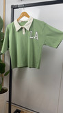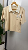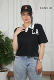 تیشرت آستین کوتاه کراپی یقه دار و دکمه دار جنس سوپر پنبه