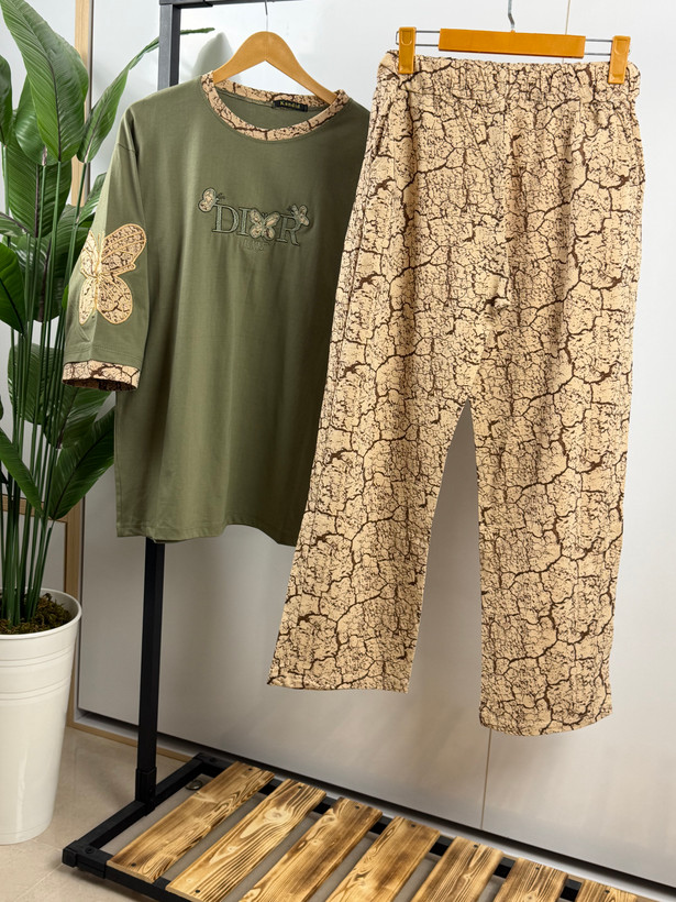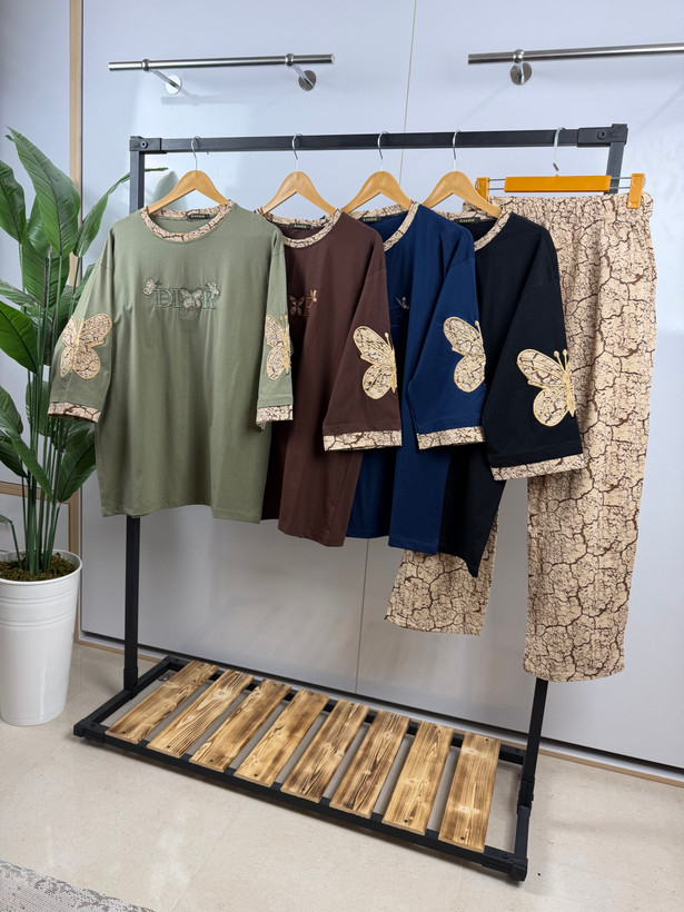 ست پاپیون با تیشرت لانگ و شلوار بگ