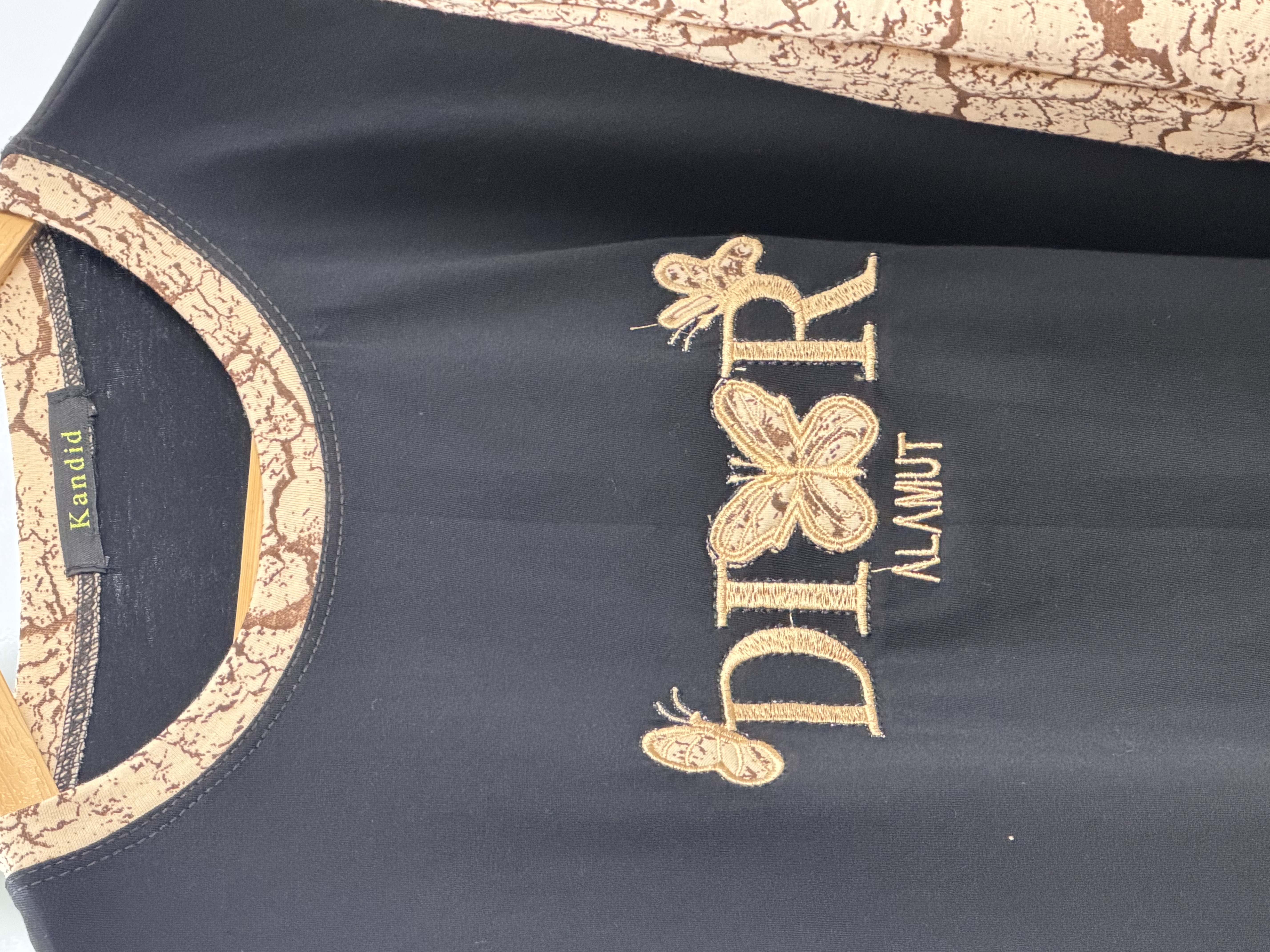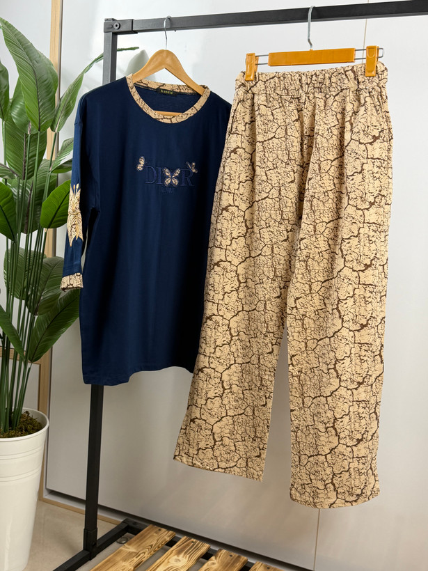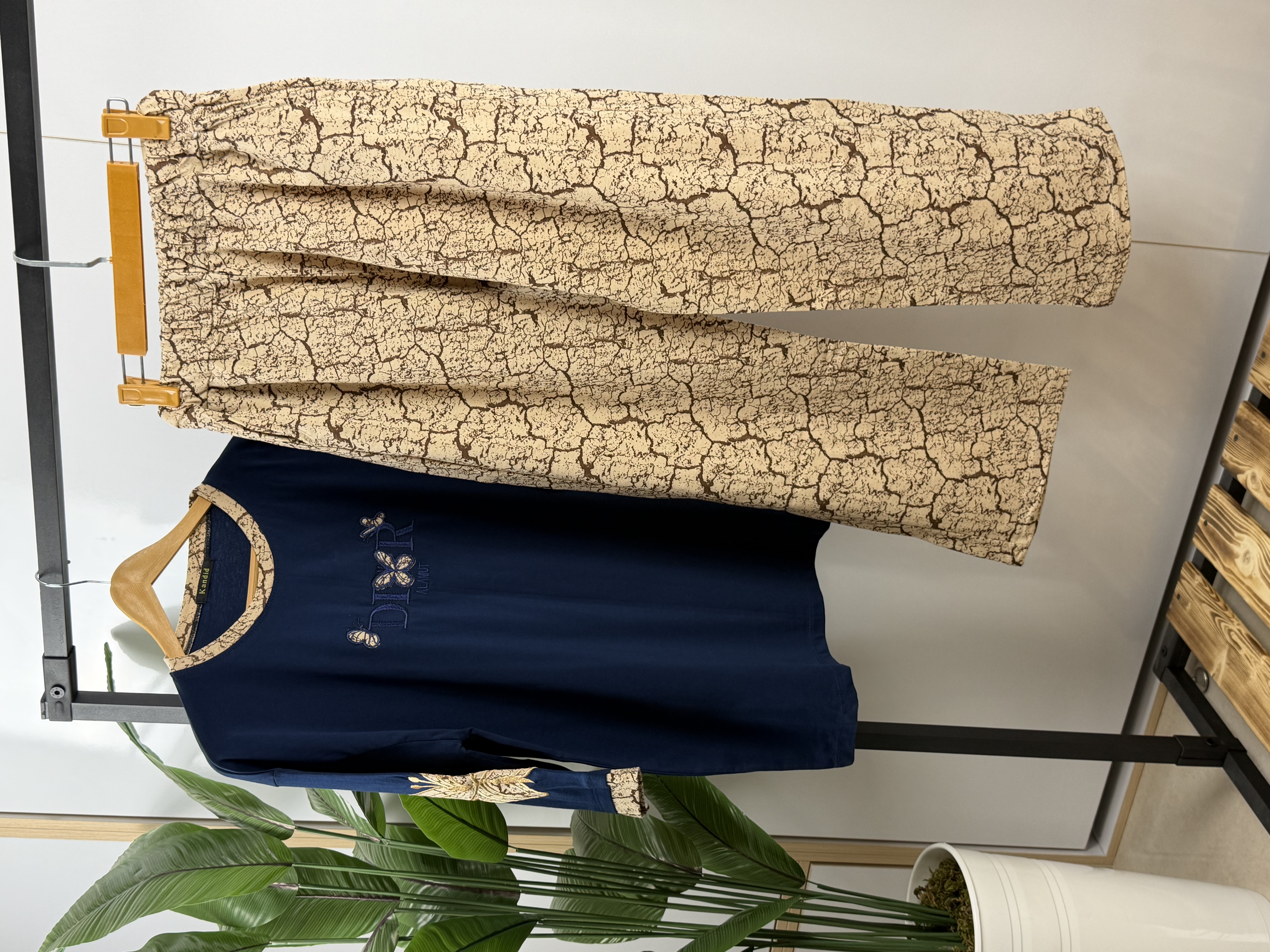 لبه آستین و لبه یقه خرج کار ست شلوار کار شده که زیباییشو دو چندان کرده