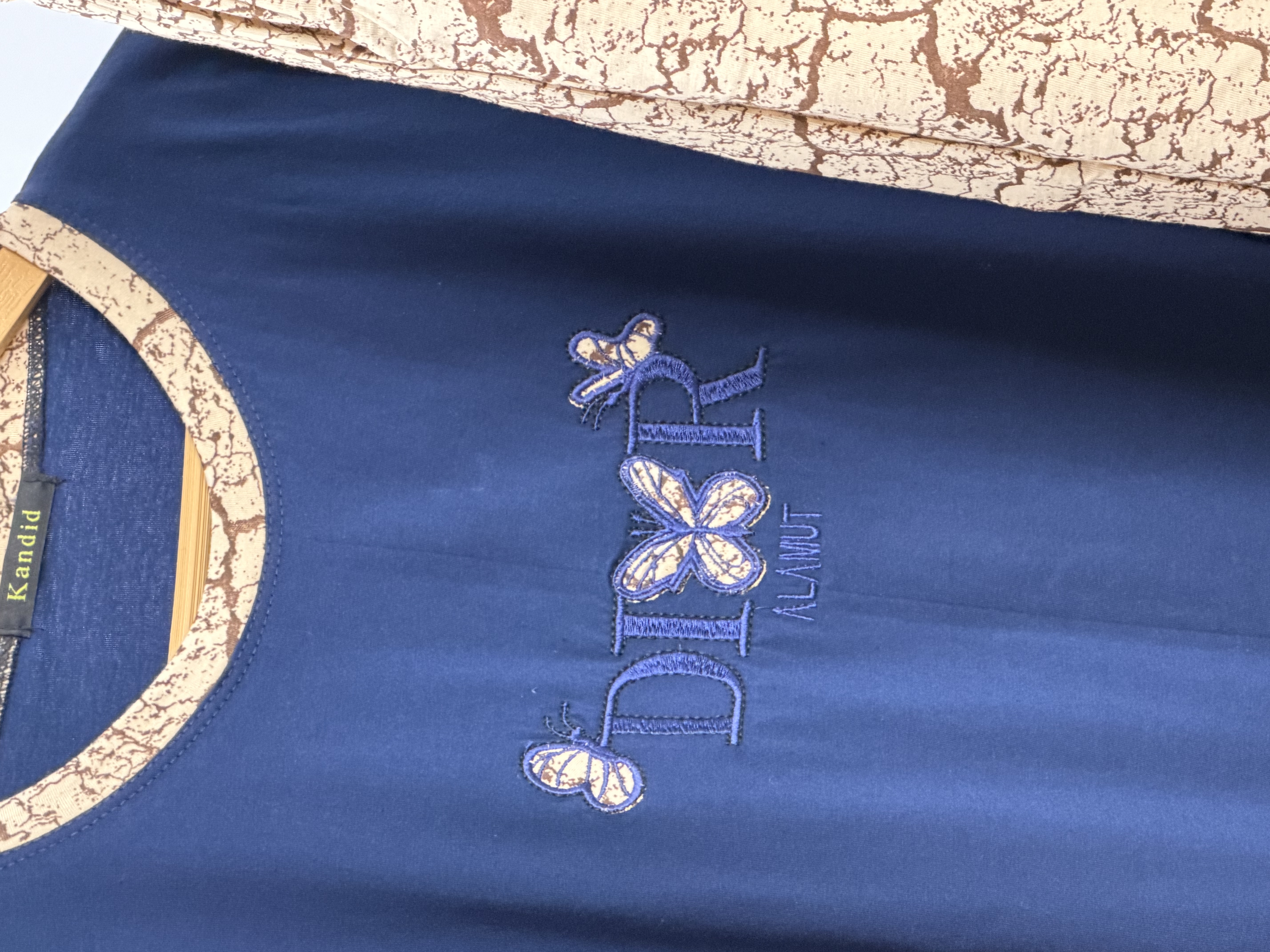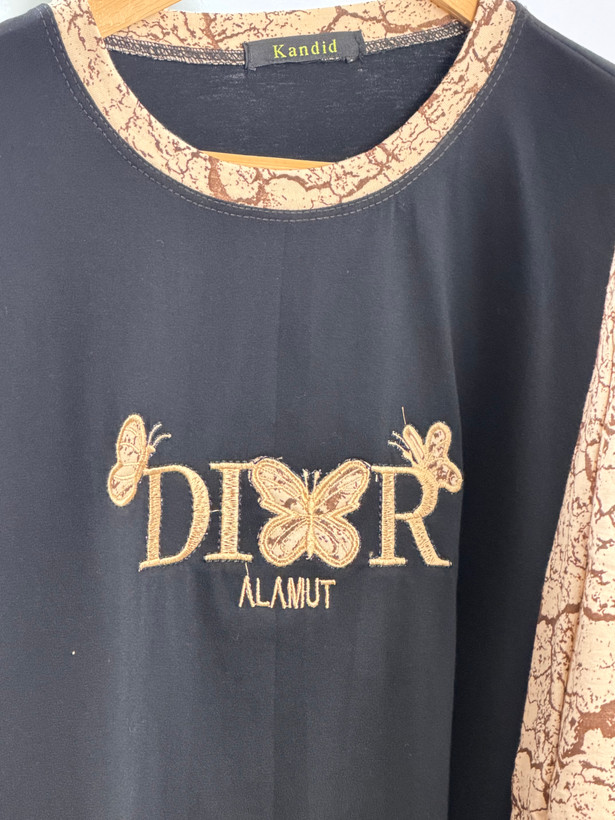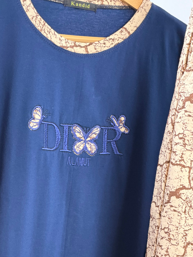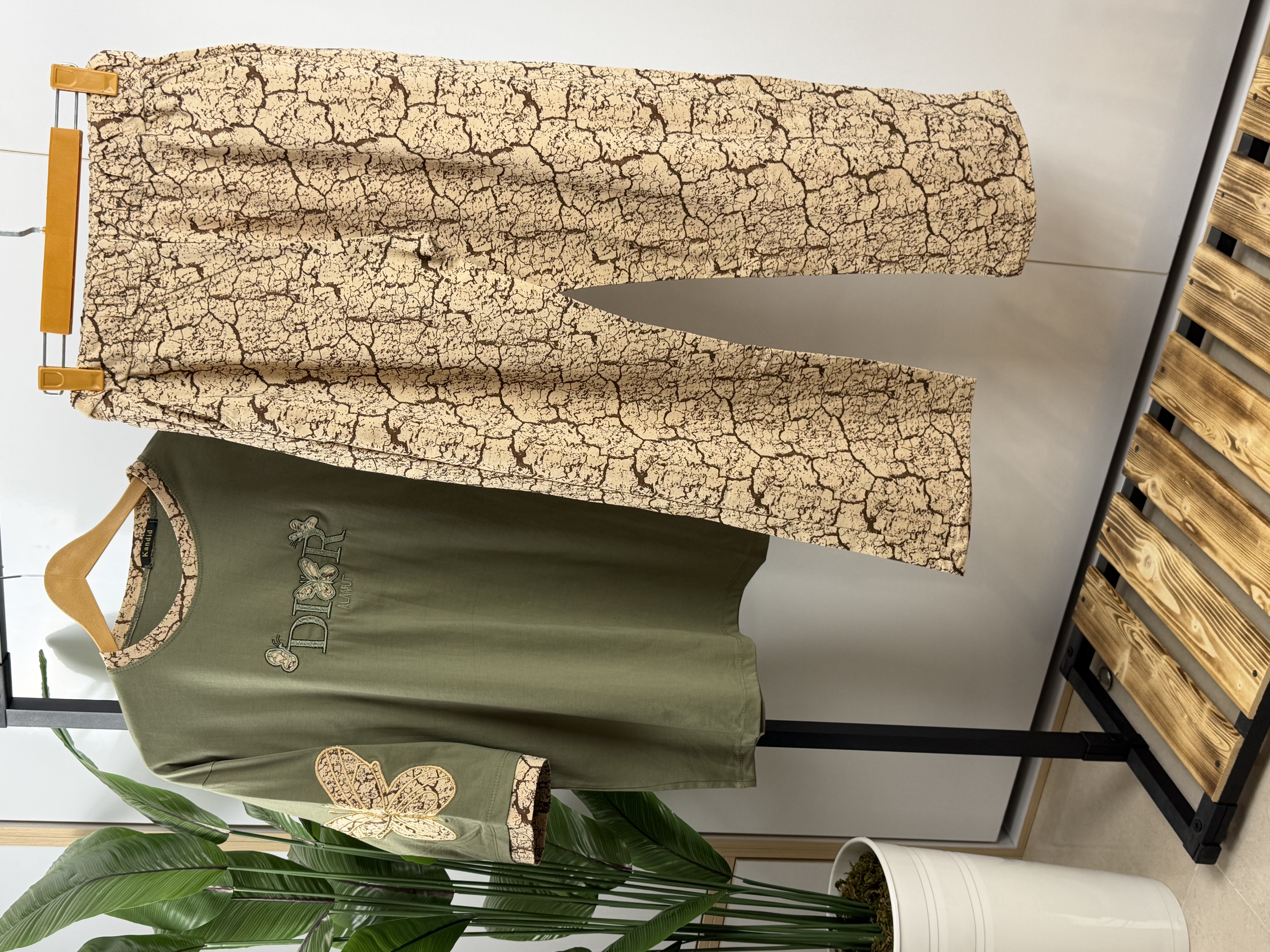 لبه آستین و لبه یقه خرج کار ست شلوار کار شده که زیباییشو دو چندان کرده