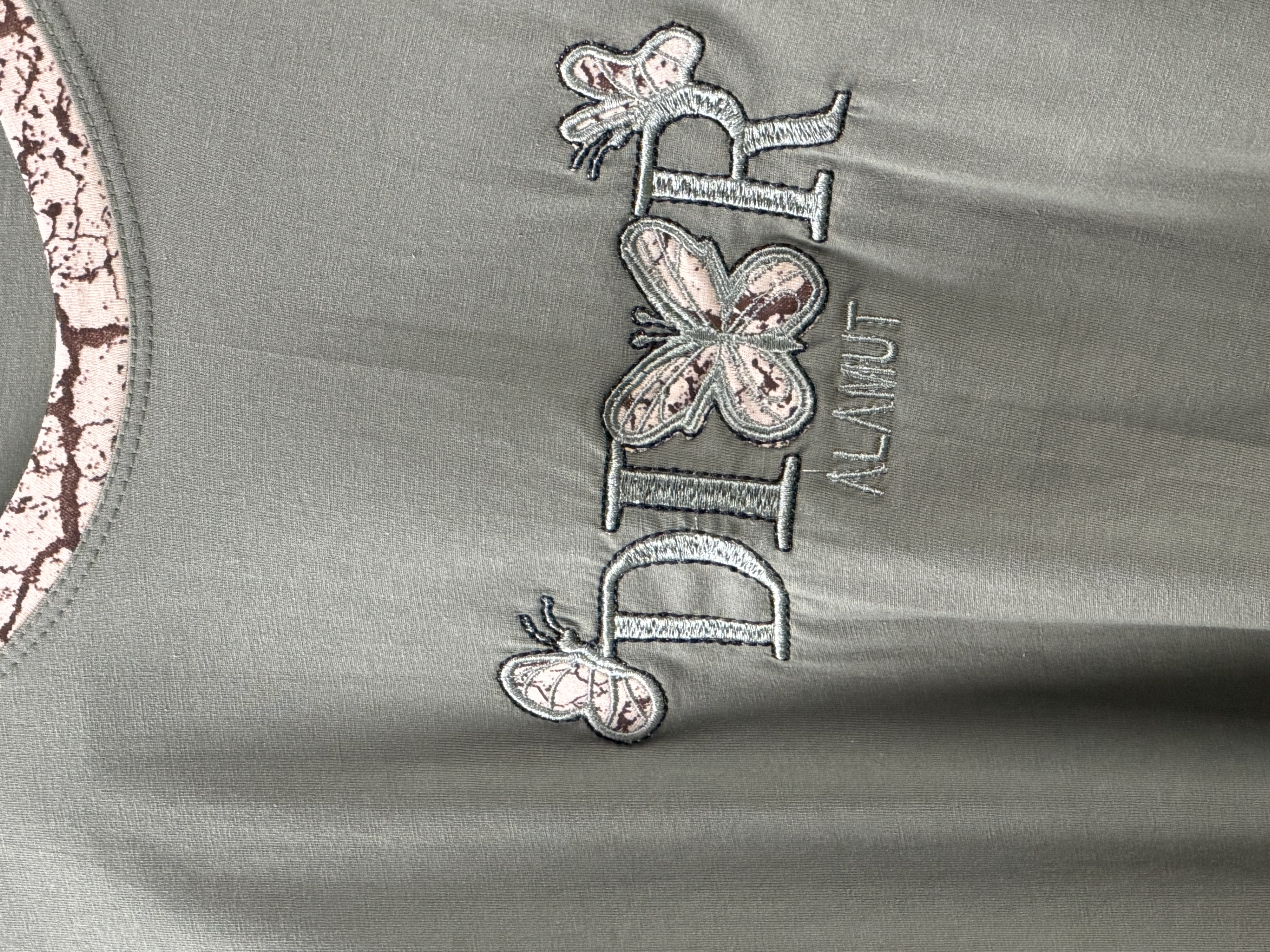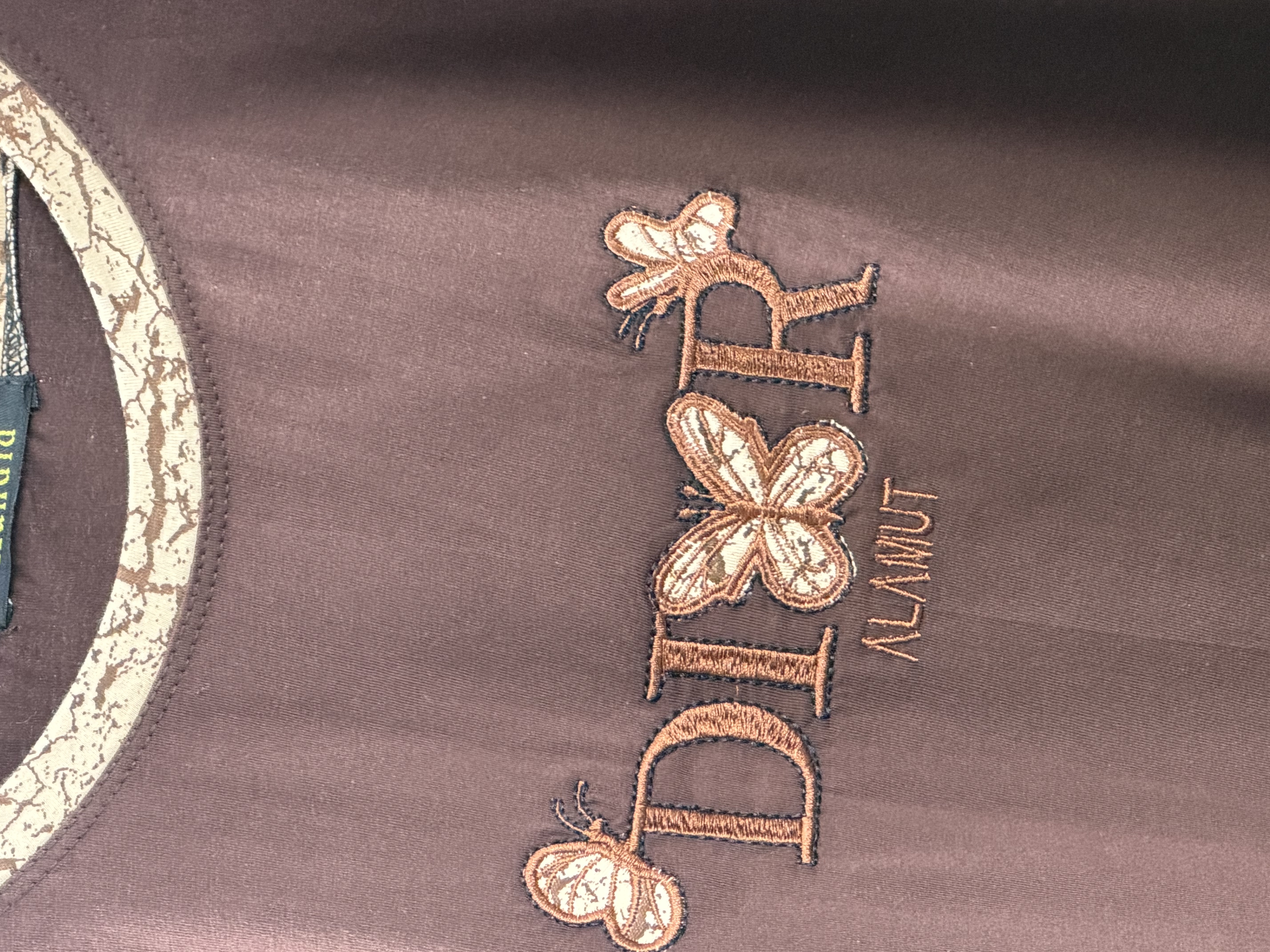 روی آستین و جلوی سینه گلدوزی پاپیون داره