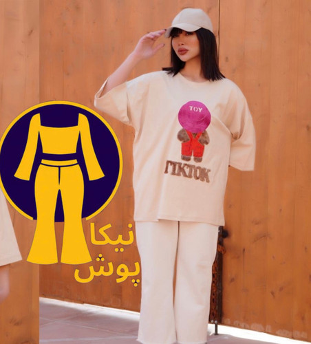 ست تیشرت باکسی قواره آزاد خرس پشمالو و شلوار بگ جنس سوپر پنبه