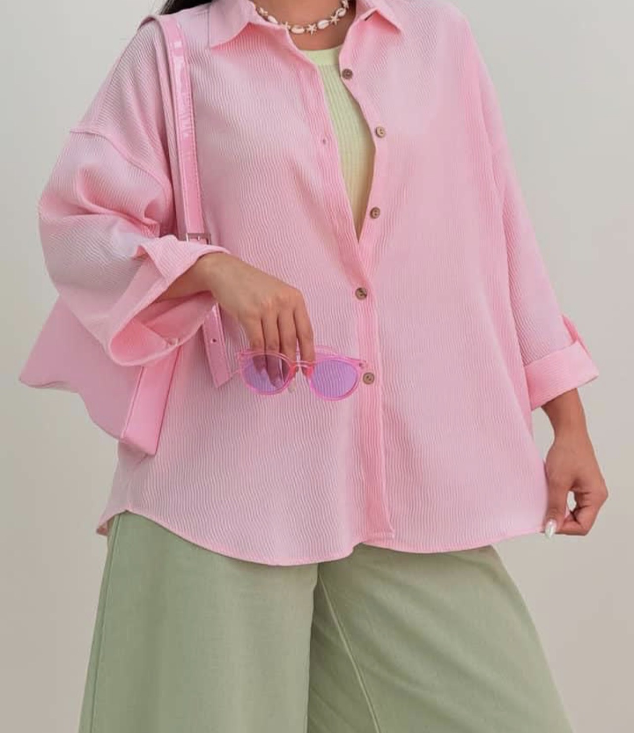 ناموجودشومیز آستین سه ربع پاگن دار تک جیب جنس السا